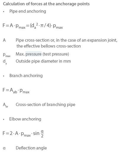 As an external force, the axial force arising from the internal pressure must be absorbed by anchorage points at the beginning and the end of the piping and at any change of direction or cross-section.