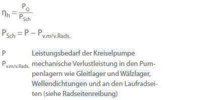 Der hydraulische Wirkungsgrad (ηh) wird in der Fachliteratur der Kreiselpumpentechnik auch als "Schaufelwirkungsgrad" bezeichnet und ist der Quotient aus der Förder- (PQ) und Schaufelleistung (PSch).