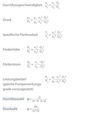 Daher gelten für zwei geometrisch ähnliche Kreiselpumpen in physikalisch ähnlichen Betriebszuständen nachfolgende Modellgesetze: