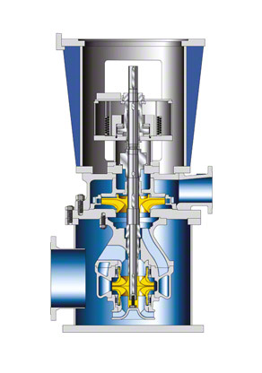 mehrströmige Pumpe) sind hydraulisch ausgeglichen und Restschübe werden durch ein ölgeschmiertes Axiallager aufgenommen.