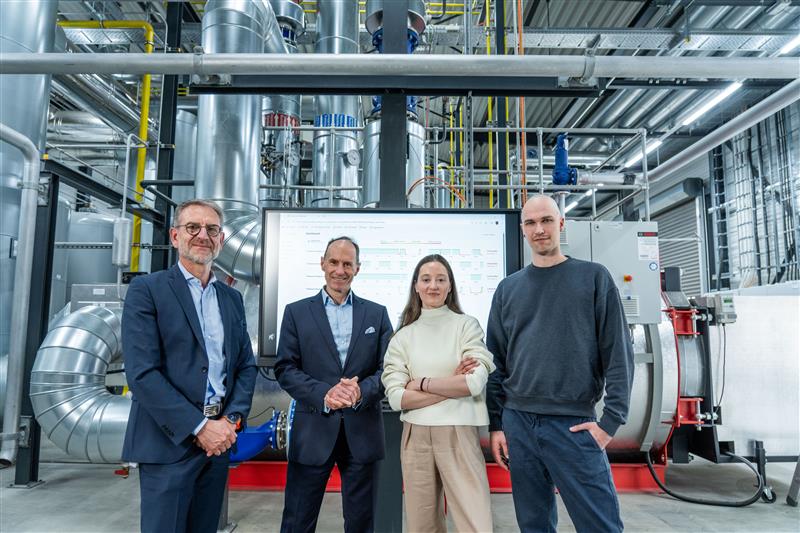 Foto: KSB-CTO Dr. Stephan Bross, KSB-CEO Dr. Stephan Timmermann, ai-omatic-CEO Lena Weirauch, ai-omatic-CTO Björn Schulz © KSB SE & Co. KGaA