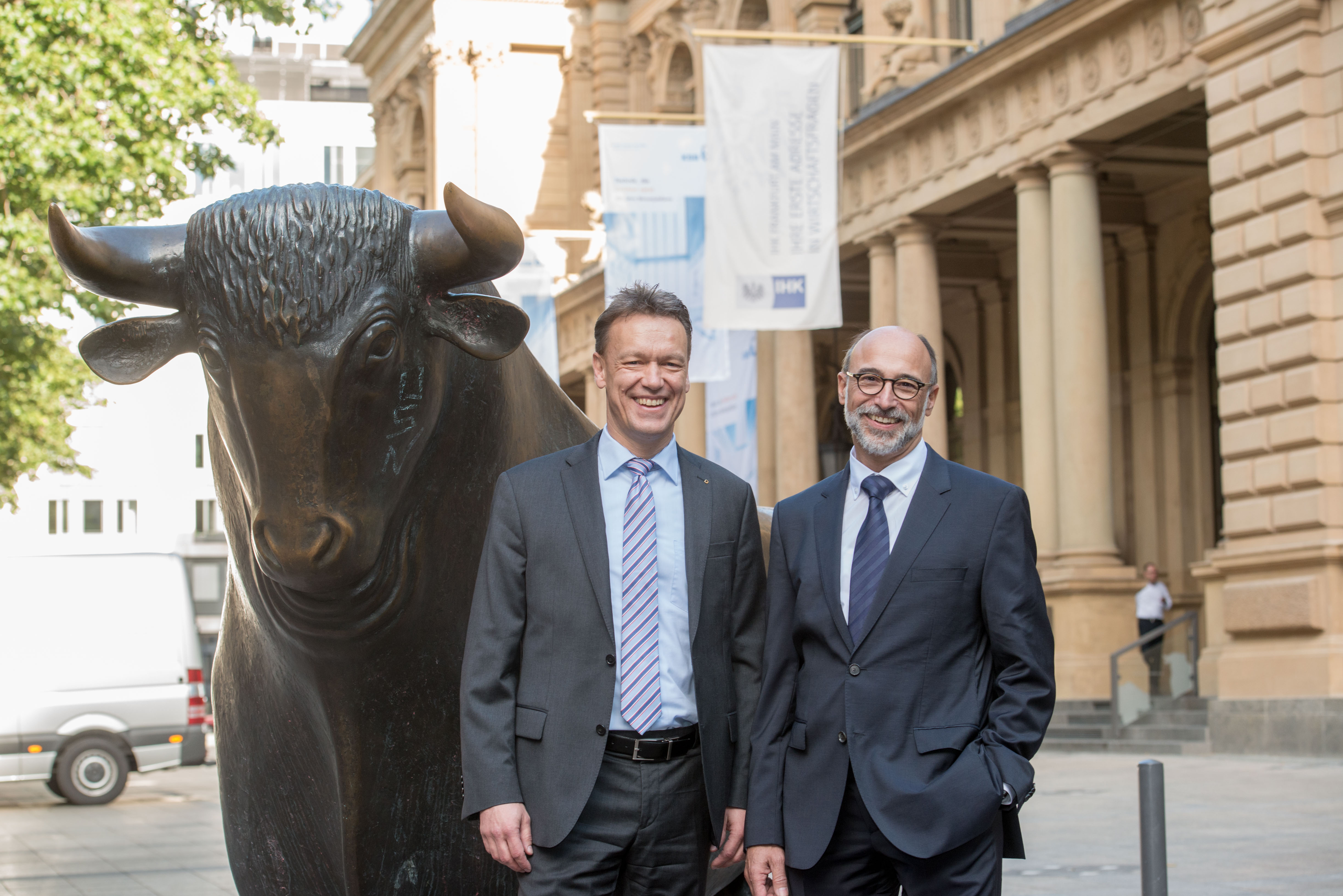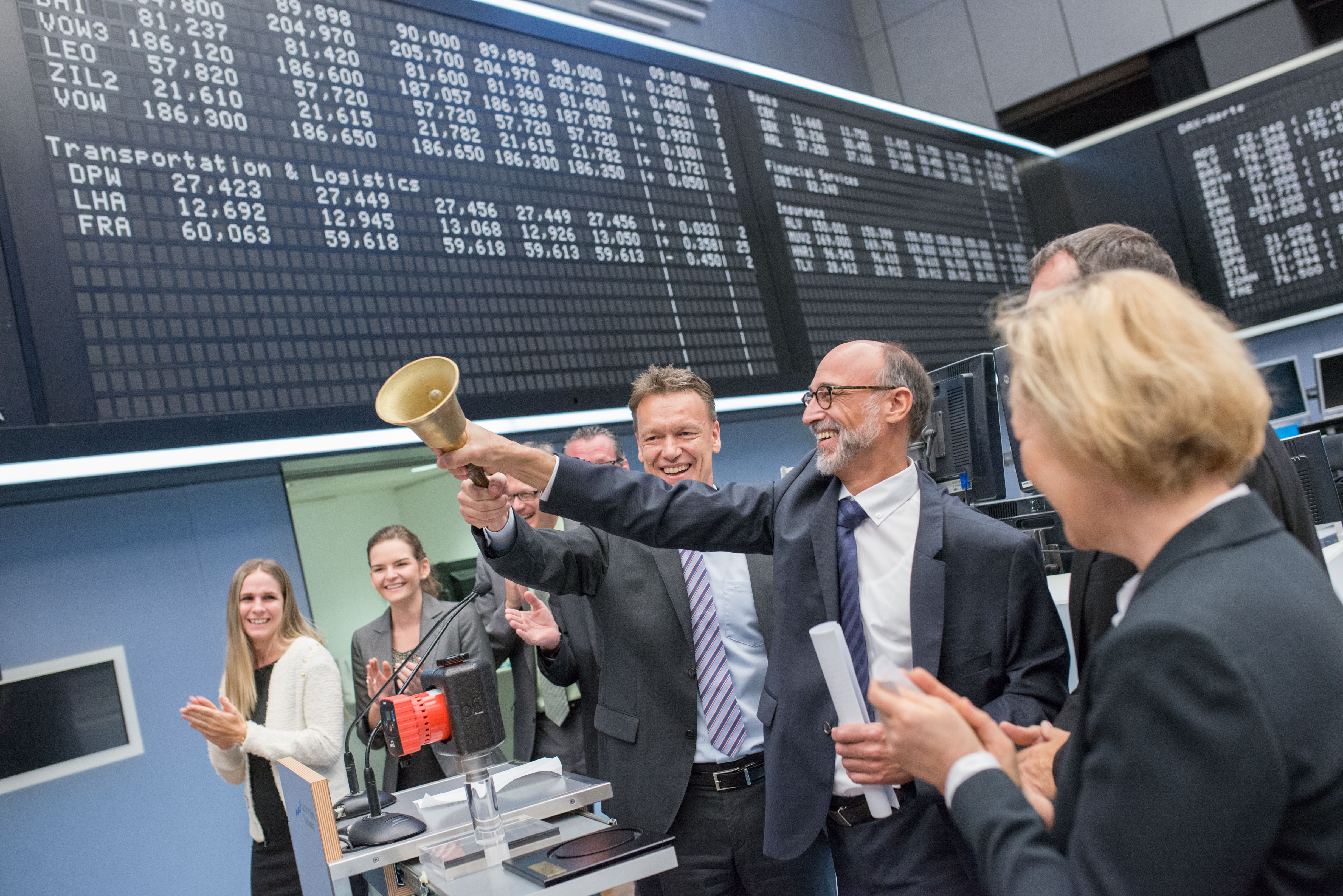 Die KSB AG begeht in diesem Jahr ihr 120-jähriges Jubiläum an der Frankfurter Wertpapierbörse. Aus diesem Anlass eröffneten heute die beiden Vorstandsmitglieder Dr. Peter Buthmann und Werner Stegmüller den Handel mit dem Läuten der Börsenglocke.
