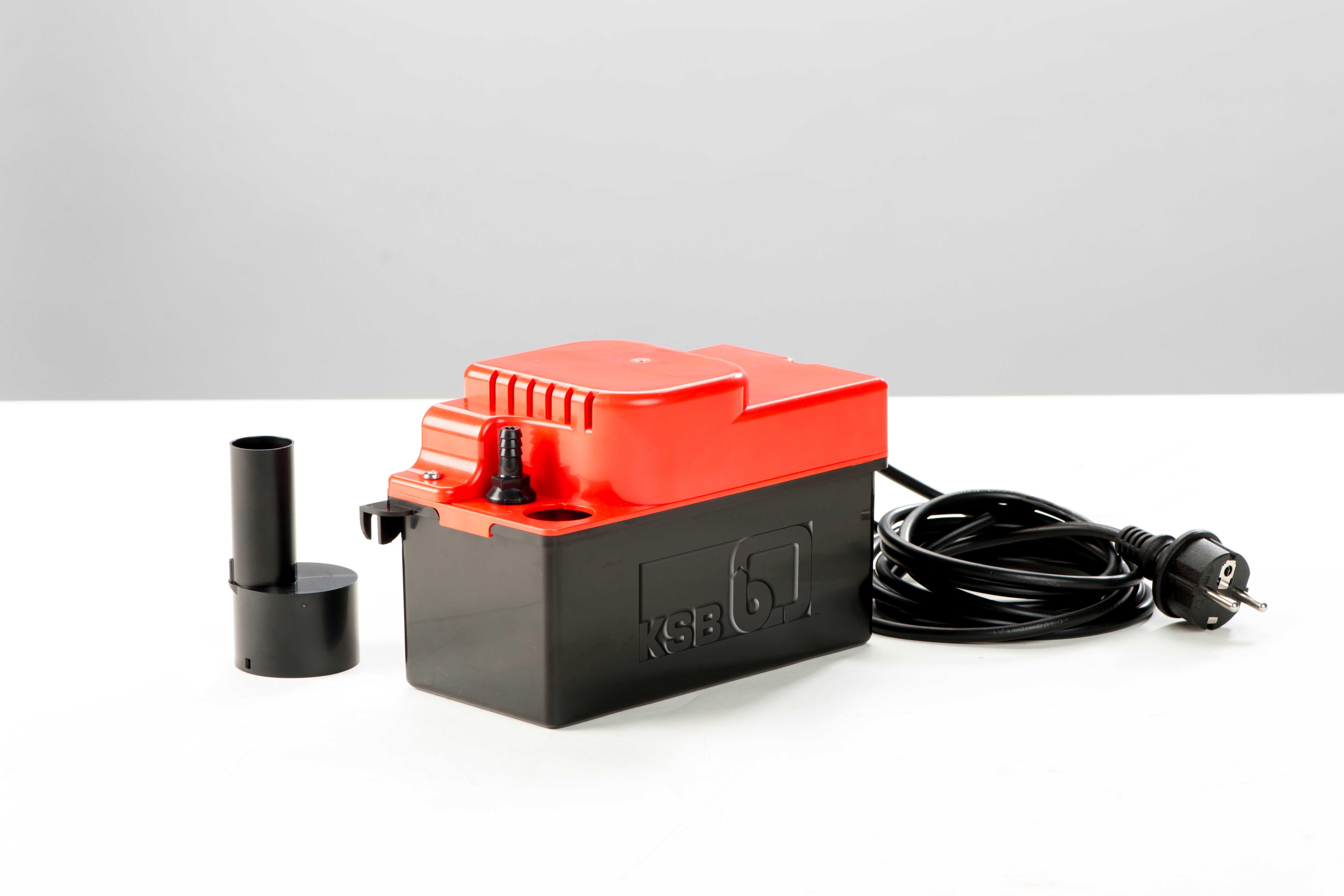Der neue „Kondensat-Lift“ fördert bis zu 340 l/h Flüssigkeit auf eine Höhe von bis zu 4,50 m. Die Maximaltemperatur des Mediums liegt bei 50 °C. Eine integrierte Rückschlagklappe verhindert das Leerlaufen der Druckleitung und sorgt für hohe Betriebssicherheit. Der pH-Wert des Kondensats sollte 2,8 nicht unterschreiten.