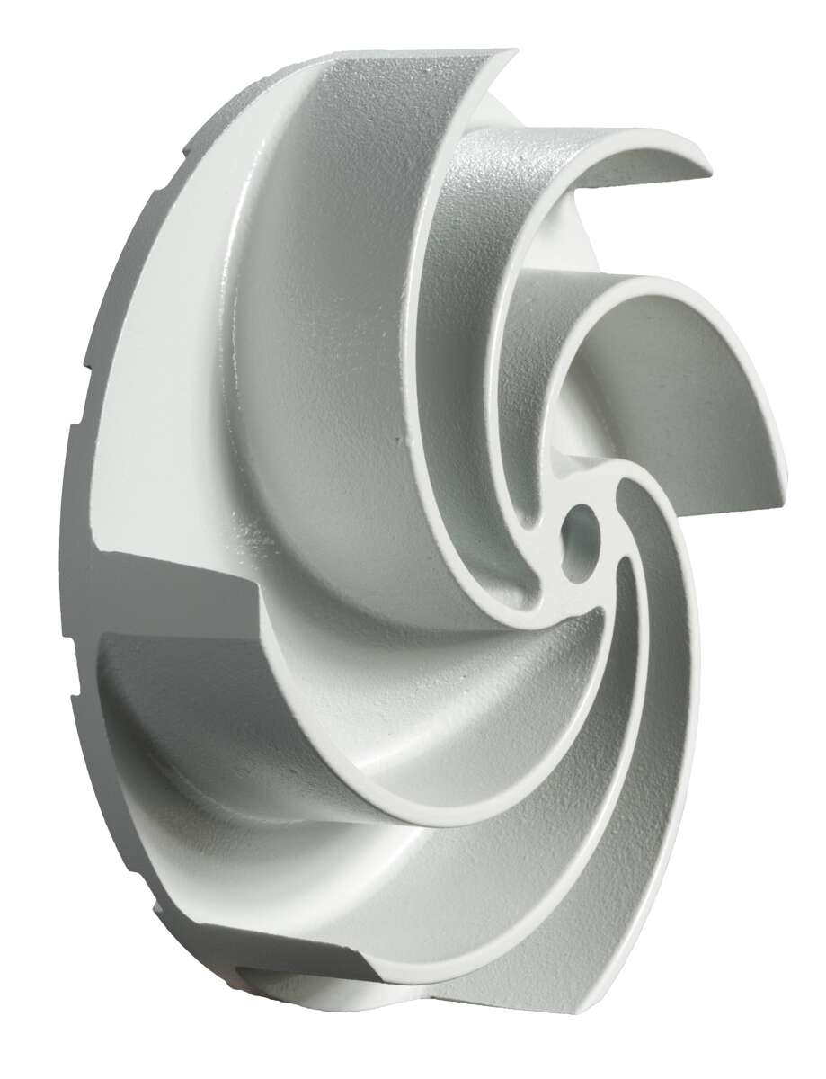 Außerdem gestalteten die Entwickler des Pumpenherstellers die Schaufel so, dass diese im Nabenbereich einen Drall erzeugen, der faserartige Feststoffe nach außen von der Laufradnabe weg leitet. Gestützt auf eine jahrzehntelange Erfahrung bei der Konstruktion von Freistromrädern nutzten die Hydraulikexperten die CFD-Methode (Computational Fluid Dynamics) um mit diesem computergestützten Simulationsverfahren detaillierte Kenntnisse über die komplexen Strömungsvorgänge in der Pumpe zu gewinnen. Aufgrund dieser Arbeiten erzielen die Fmax-Laufräder Wirkungsgrade in Bereichen, die man bisher nur mit Einkanalrädern erreichen konnte.