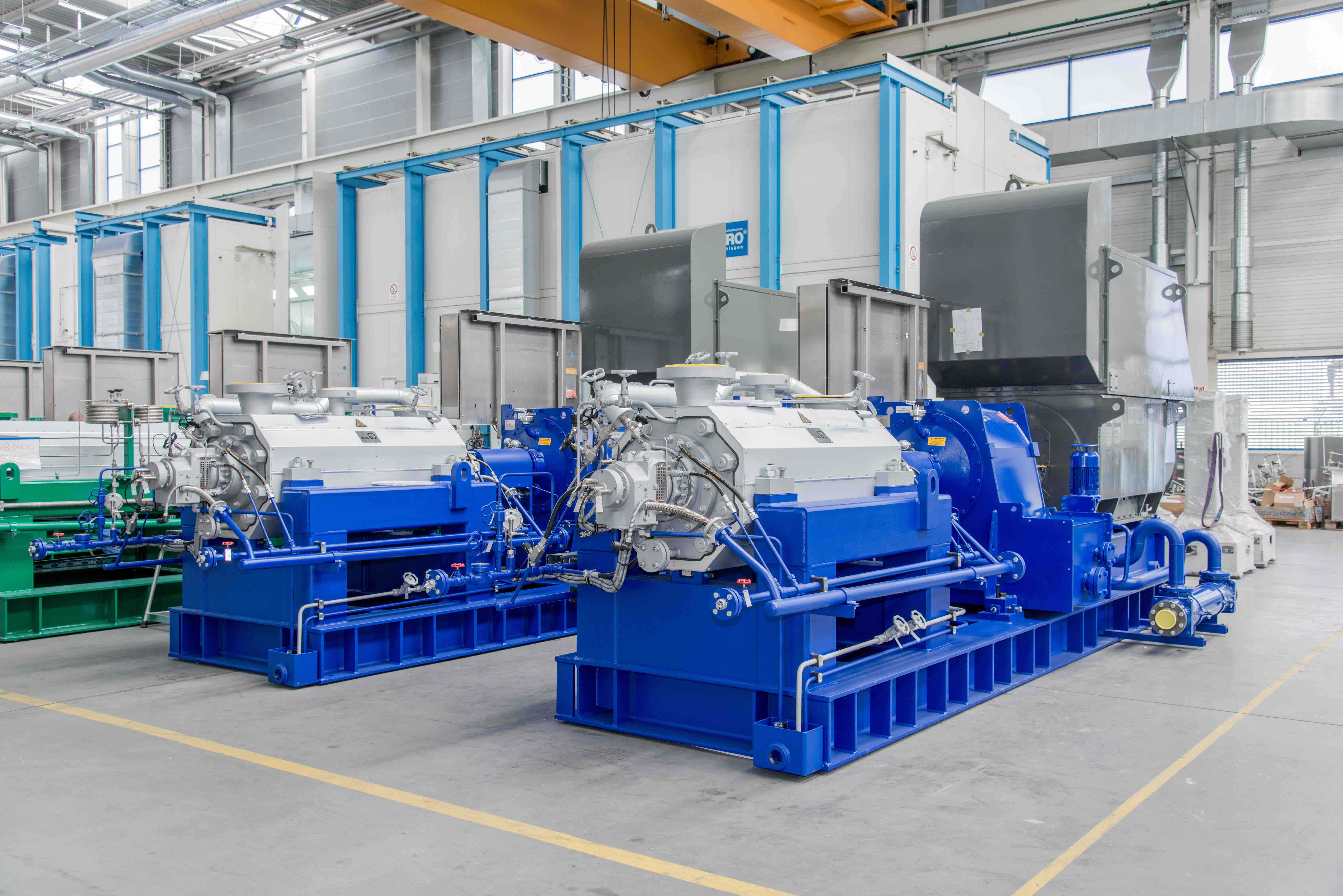Bei der Lieferung handelt es sich um drei Pumpen des Typs HGC. Zwei davon besitzen je einen drehzahlgeregelten, 4.350-kW-starken, zweipoligen 4.000-Volt-Motor. Das dritte Aggregat ist über ein Getriebe mit einem ebenfalls 4.350 kW starken Turbinenantrieb verbunden. Die Fördermenge jeder einzelnen Einheit beträgt rund 1.011 Kubikmeter in der Stunde und die zu überwindende Förderhöhe liegt knapp über 1.400 Metern. Alle medienberührten Bauteile sind aus Chromstahl gefertigt.