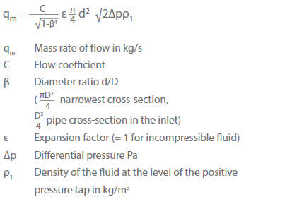 The flow rate can be determined by this differential pressure from the material characteristics of the fluid from the geometric data (under operating conditions) and the applicable factor (to be found in standards).