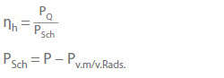 Hydraulic efficiency (ηh) is also referred to as "vane efficiency" in the specialist centrifugal pump engineering literature and is the quotient of pump power output (PQ) and vane power (Pvane).