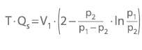 V Gas-filled volume of vertical or horizontal pipe in m3; the volume within the pump is added to that of the horizontal pipe.