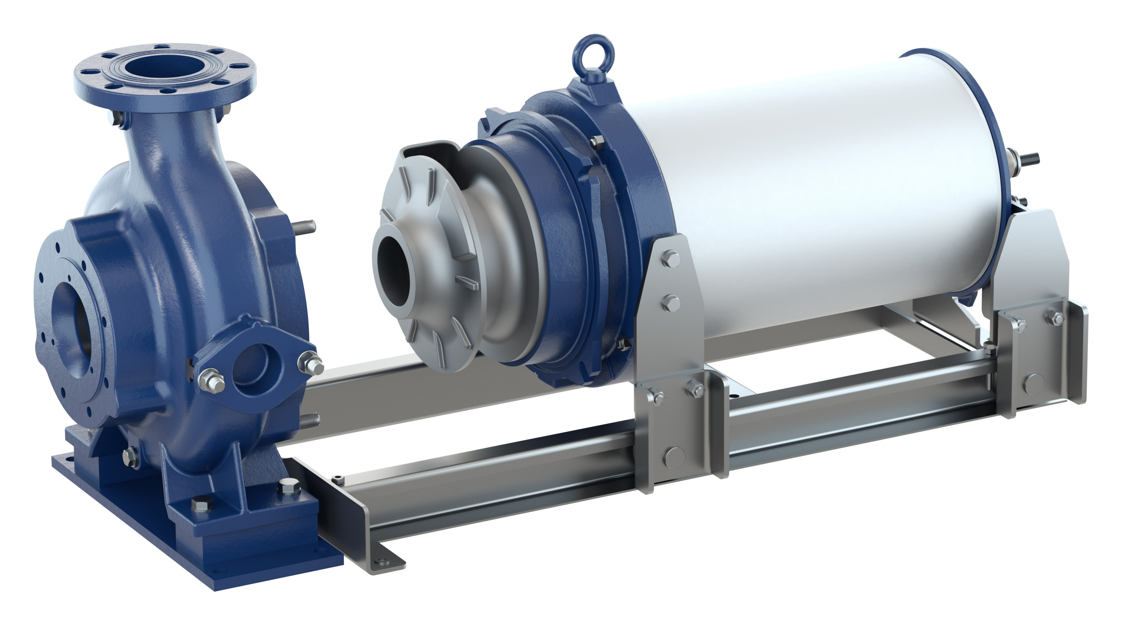 They can then remove the back pull-out unit comprising impeller, shaft, bearing, seals and motor from the casing. The latter remains in place, attached to its suction and discharge lines. Once the back pull-out unit has been removed, the impeller is freely accessible. Maintenance work can then be carried out without any problems. After completion, the service engineer simply pushes the back pull-out unit back into position.