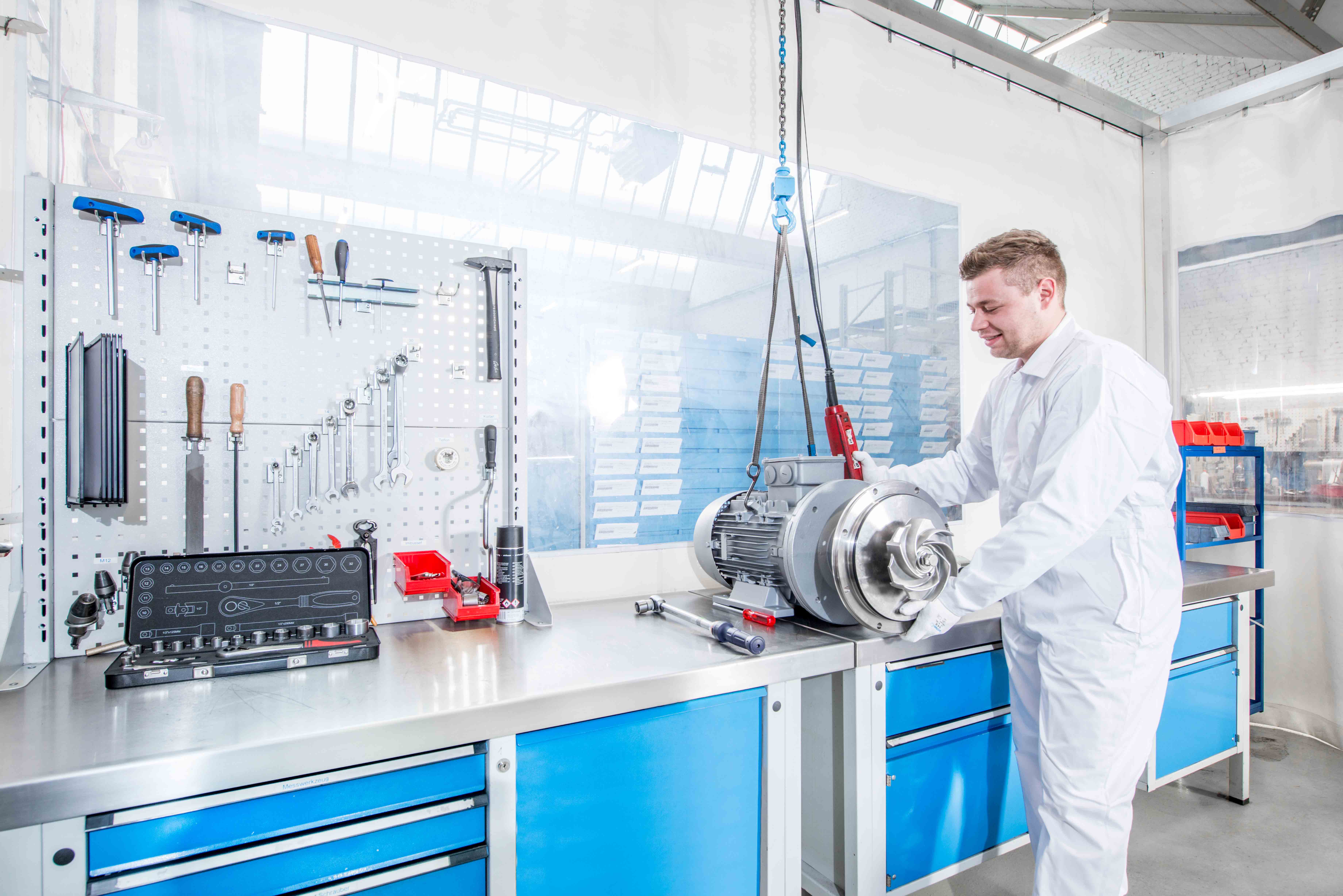 In the limelight at the KSB SE & Co. KGaA trade fair stand is, among others, the newly developed concept of a maintenance workstation for hygienic food pumps only. The so-called LSA (Life Sciences Applications) hygiene workstation is equipped with stainless steel surfaces, work benches that are easy to clean, and tools and clothing for use in this workstation only. Also, all lubricants supplied are FDA-approved. At the KSB stand in Cologne, such a workstation will be demonstrated by a service engineer performing maintenance work on a hygienic pump live at regular intervals.