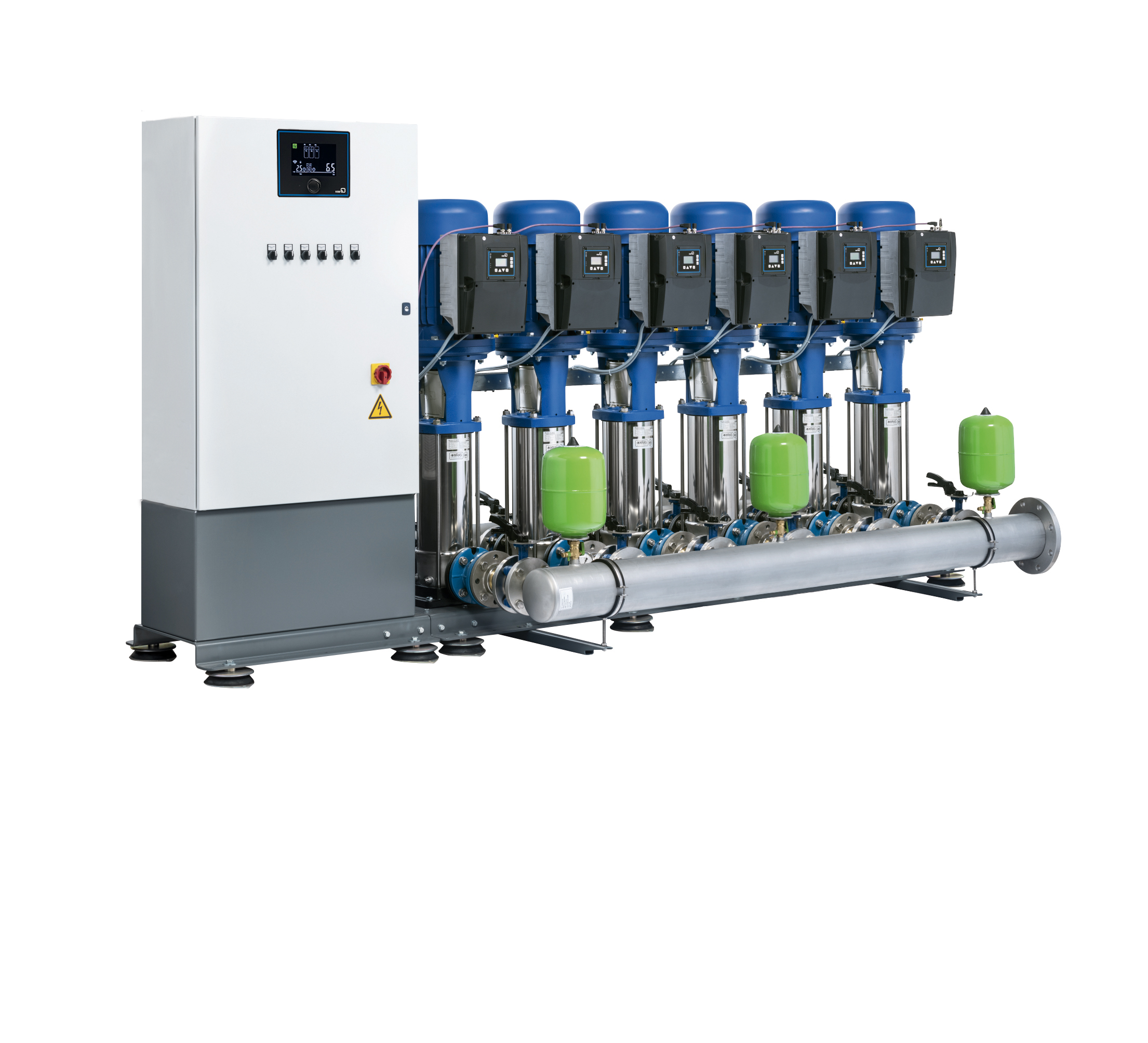 When water consumption stops, all pumps are ramped down one after the other once the stop pressure has been reached. This ensures that the individual pumps operate only in line with actual demand. If a pump has not been operated for over 24 hours, the microprocessor control unit initiates a test run for this pump. Should lack of water occur in the inlet, the system stops automatically to prevent damage caused by dry running.