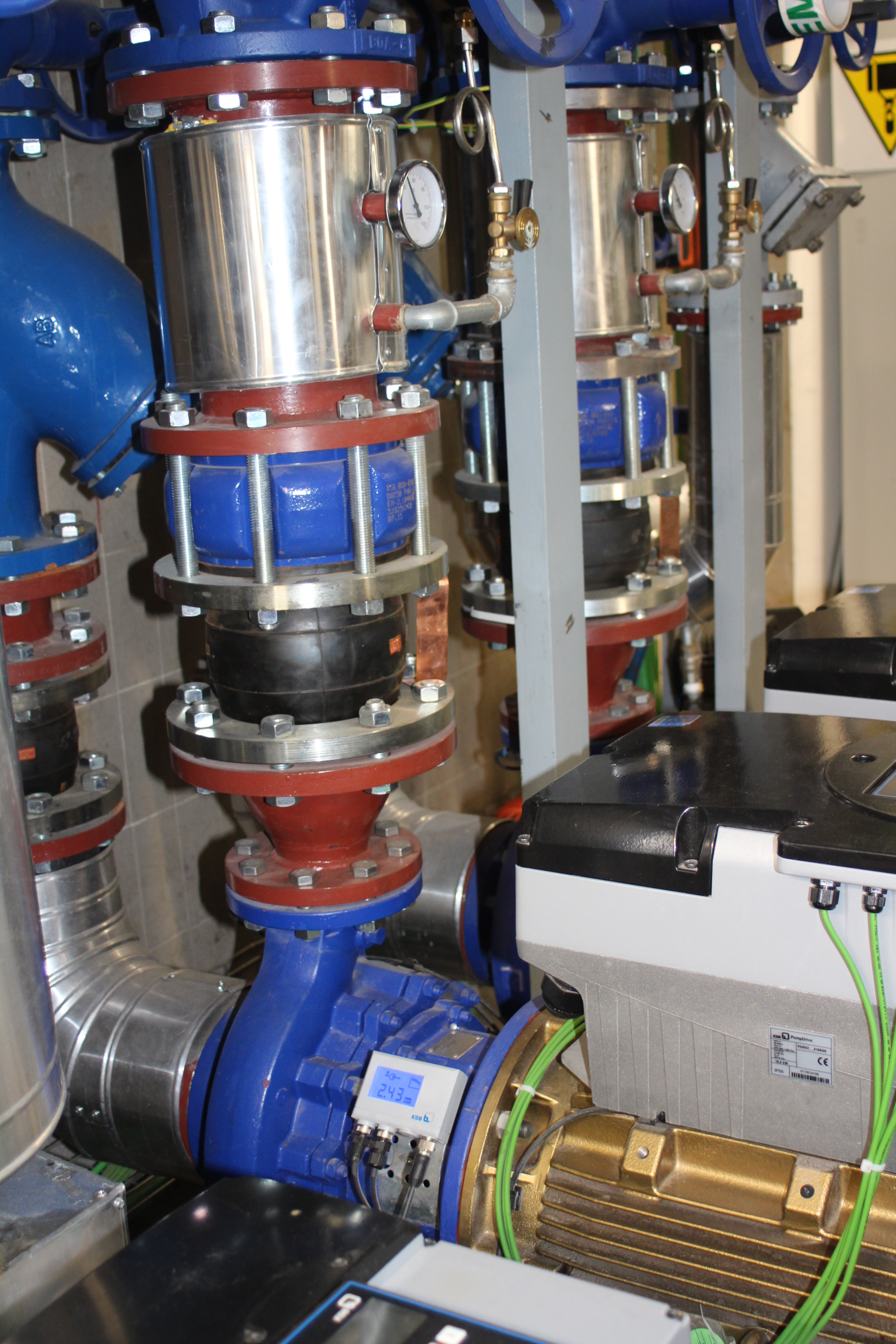Energy savings were essentially enabled by the replacement of hot and cold water pumps, valves, strainers and expansion joints. All pumps of the Etabloc series installed are equipped with PumpDrive variable speed systems and high-efficiency synchronous reluctance motors. A great advantage of the pump’s drive unit is the integrated power electronics, eliminating the need for a control cabinet. This is very convenient given the limited space available.