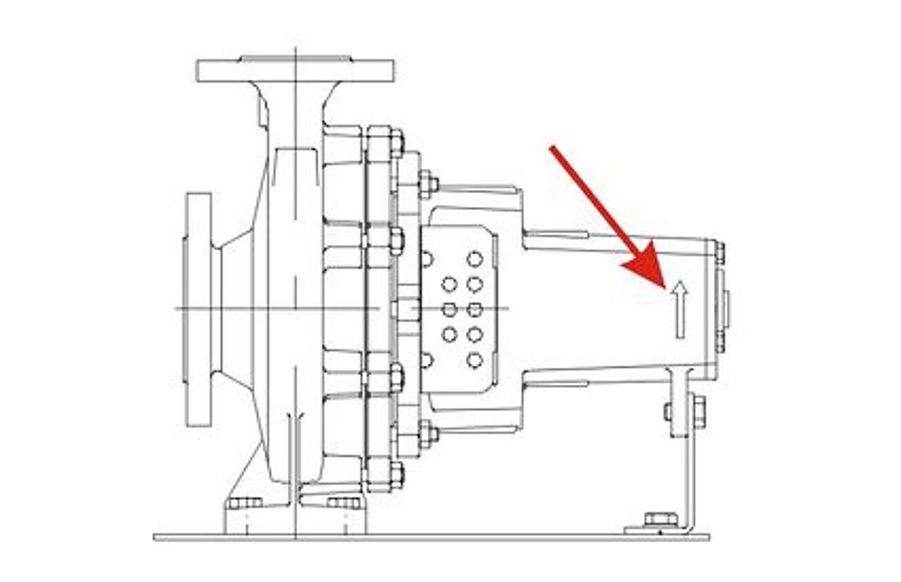 O sentido de rotação correcto é indicado pela seta localizada no corpo da bomba (ver figura). Se nas bombas KSB modelo ETANORM (horizontais, monocelulares, normalizadas) o sentido de rotação correcto é o dos ponteiros do relógio, quando visto do lado do motor, noutros modelos de bomba isso pode já não ser verdade. Ou seja, o sentido de rotação correcto não é sempre o mesmo, depende do tipo de bomba.